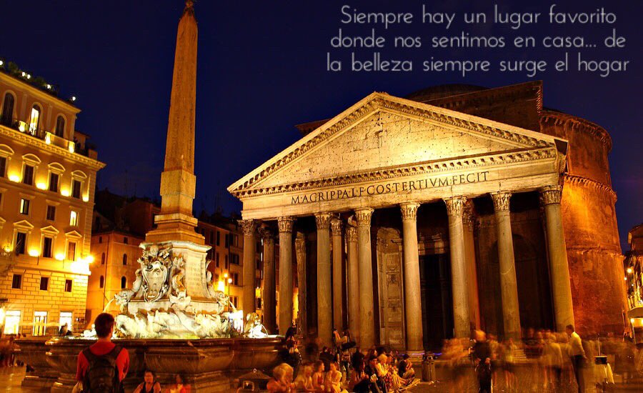 Es el Panteón, una palabra griega que significa “casa de los dioses”. Es macizo y contundente por fuera pero a su vez tan delicado que puede llega a emocionar cuando se atraviesa el plinto sostenido por recias columnas y uno se encuentra en el corazón del templo. Sus formas son como una sinfonía hecha arquitectura. Sigue leyendo